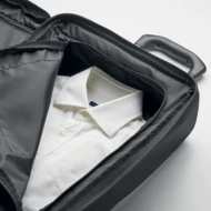 Walizka z poliestru 600D RPET. Dwie duże kieszenie wewnętrzne zapinane na zamek błyskawiczny. Jedna przednia kieszeń zapinana na zamek błyskawiczny oraz górne, boczne i dolne uchwyty. W zestawie zamek szyfrowy i podwójna rama rurowa. 2 kółka.