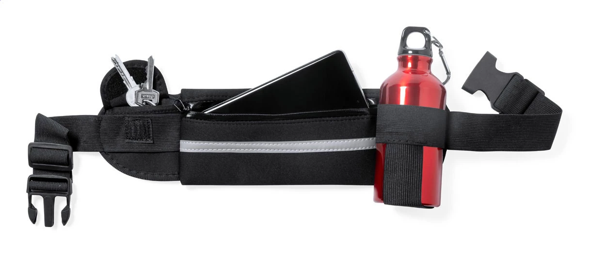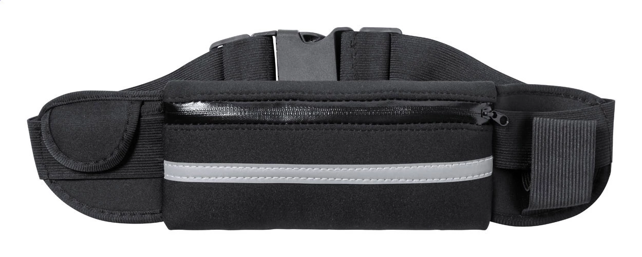 Torba biodrowa softshellowa z 1 przegrodą zapinaną na zamek, 1 małą kieszenią i elastycznym uchwytem na butelkę, odblaskową opaską i regulowanym paskiem. Produkt przeznaczony wyłącznie do celów promocyjnych nie kwalifikuje się jako sprzęt ochrony osobistej.