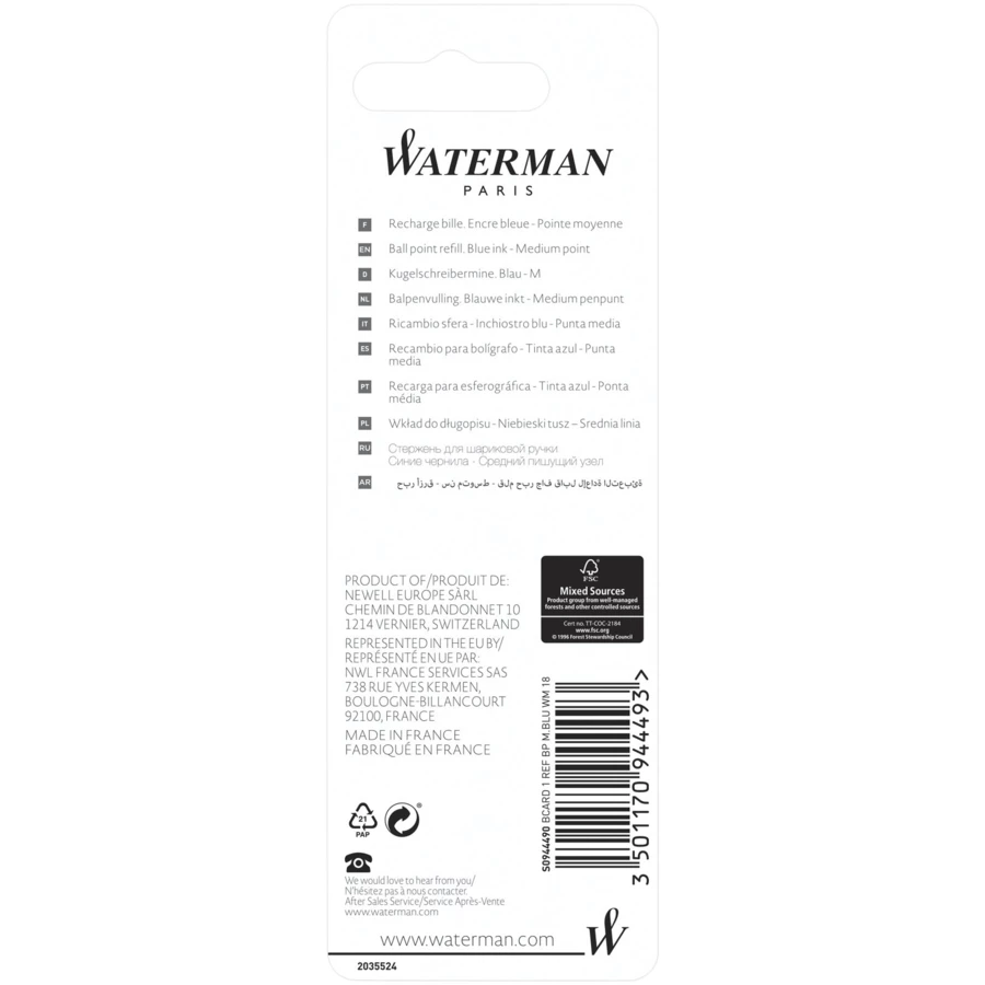 Ballpoint pen refill that provides a smooth writing experience and never dries out. The refill has a writing length of 3500 meter and a nib size of 0.7mm (medium). Packaged on a blister card.