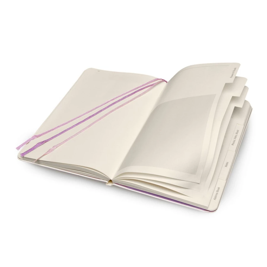 Specjalny notatnik Moleskine Wedding Journal dla par planujących ślub i wesele (216 stron), dodatkowo specjalny notatnik dla panny młodej, naklejki do personalizacji stron, elastyczna opaska, 3 tasiemki zakładkowe