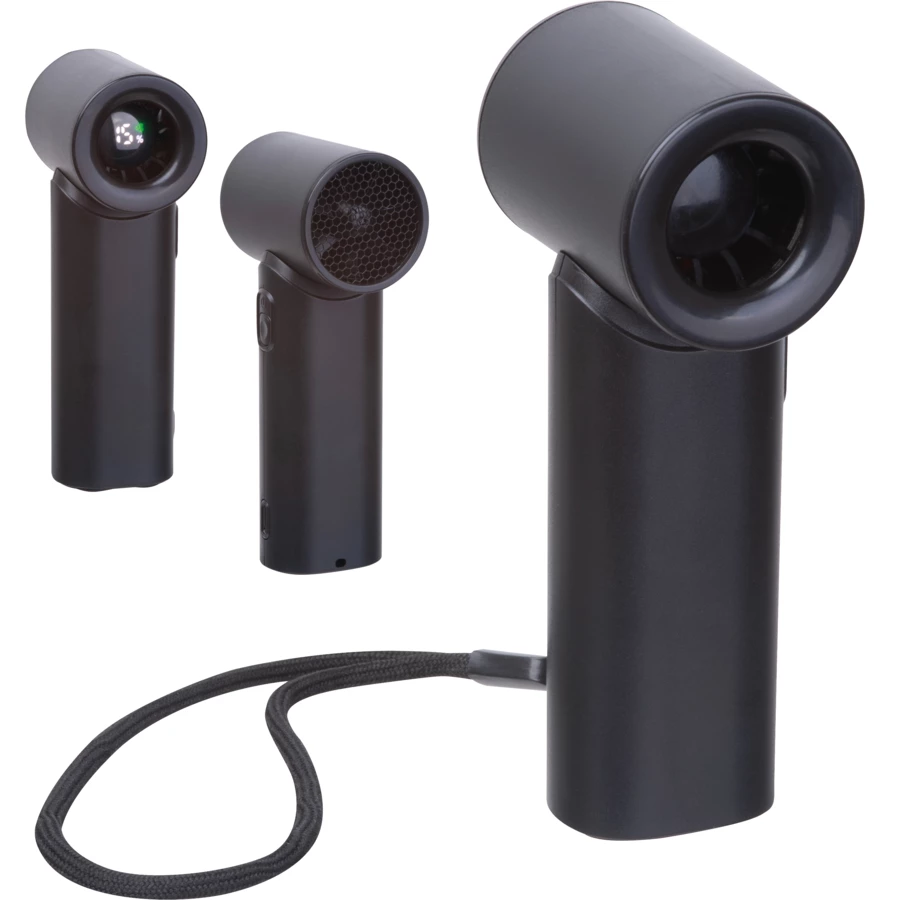 Ręczny wiatrak, z pięciostopniową regulacją prędkości. Urządzenie o mocy 5W wyposażone w akumulator, który zapewnia do 3–4 godzin pracy na pierwszym poziomie prędkości.