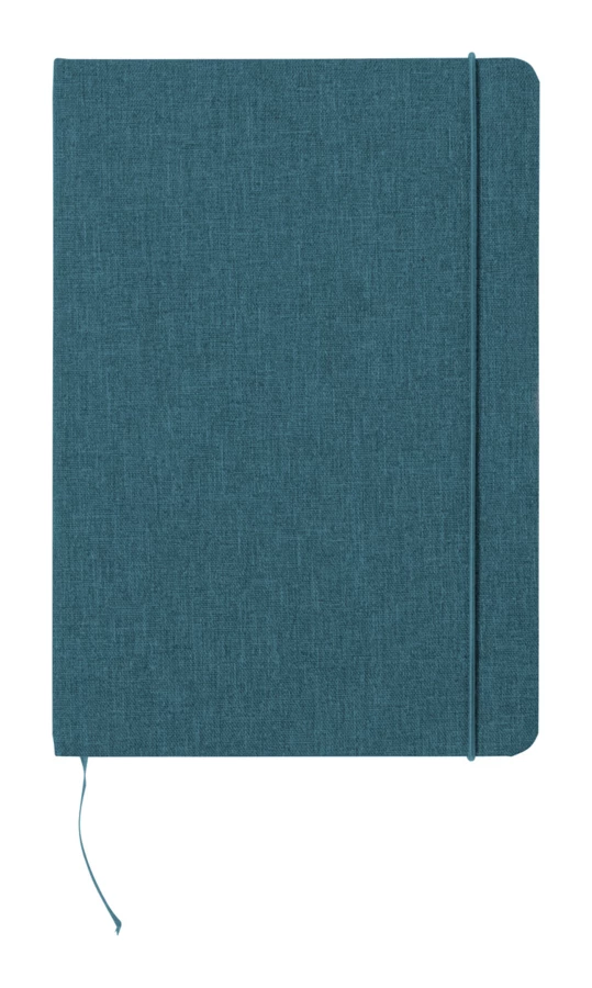 Notes w okładce z poliestru RPET, ze 100 gładkimi kartkami. Z dopasowaną kolorystycznie gumką, zakładką i uchwytem na długopis. Rozmiar A5.