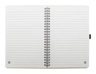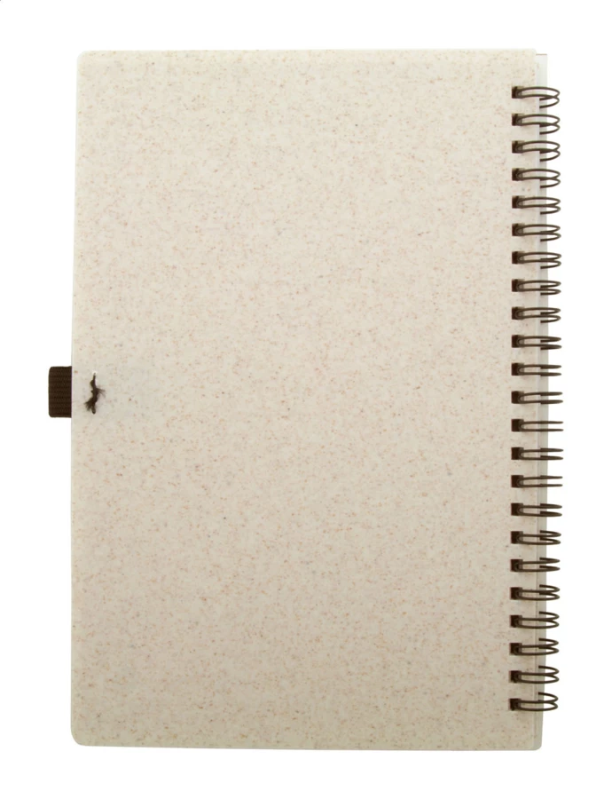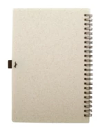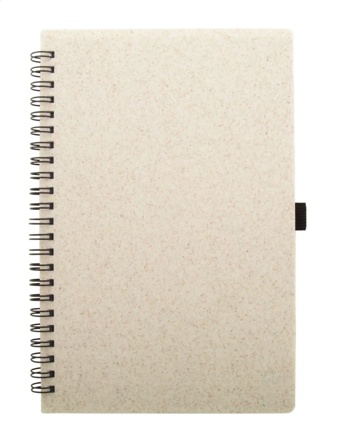 Ekologiczny notatnik spiralny, pokryty plastikiem ze słomy pszenicznej, zawierający 70 kartek w linie, wykonany z papieru pochodzącego z recyklingu, z uchwytem na długopis, format A5.