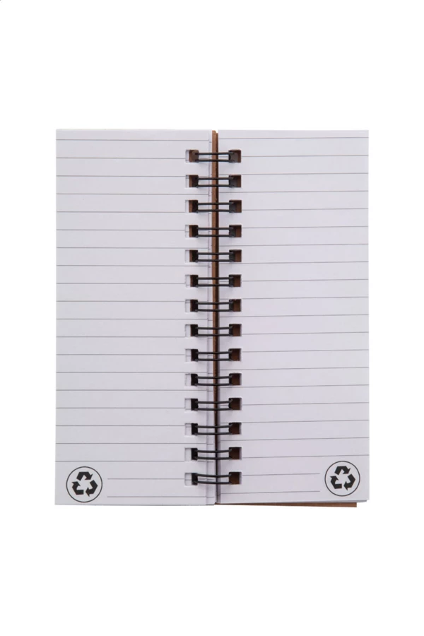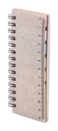 Notes spiralny z okładką z ekologicznego plastiku ze słomy pszenicznej, 40 kartek w linie z papieru z recyklingu, 25 karteczek samoprzylepnych i 125 zakładek (w 5 różnych kolorach). Z linijką 12 cm na okładce.