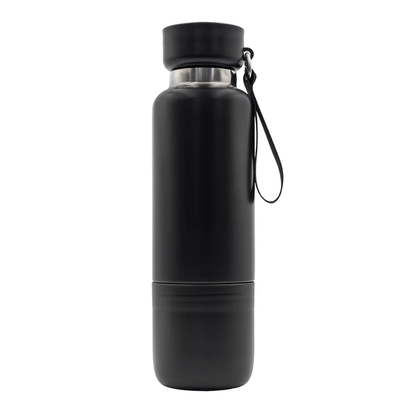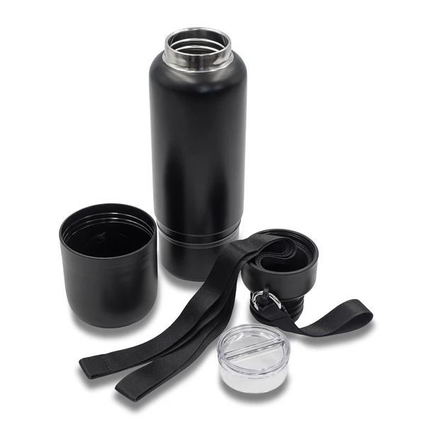 Butelka próżniowa z podwójną ścianką ze stali nierdzewnej. Posiada szczelnie zakręcaną pokrywkę z funkcją przechowywania. Do butelki dołączone są odpinane smycze w 2 rozmiarach: na nadgarstek i na ramię. Zdejmowana podstawa pełni funkcję kubka. Utrzymuje temperaturę 40 stopni Celsjusza do 12 godzin.