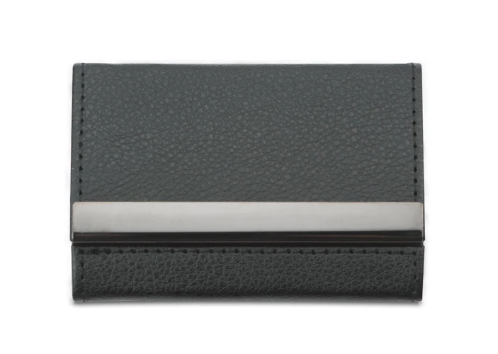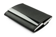 Niezwykle praktyczny wizytownik z materiału skóropodobnego (PU), dzięki któremu można przechowywać zarówno wizytówki swoje, jak i klientów. Wystarczy otworzyć właściwą przegródkę. Wizytownik pomieści 20 wizytówek (10 z kazdej strony). Grawer logo zrobimy na blaszce.