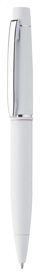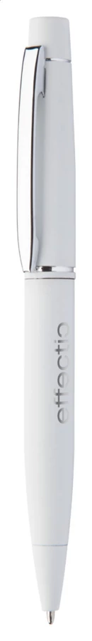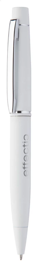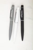 Metalowy długopis z gumowanym korpusem i niebieskim wkładem. Idealny pod grawer lustrzany.