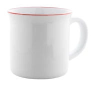 Kubek ceramiczny w stylu vintage z kolorową obwódką, pod sublimację. 300 ml. W kartoniku.