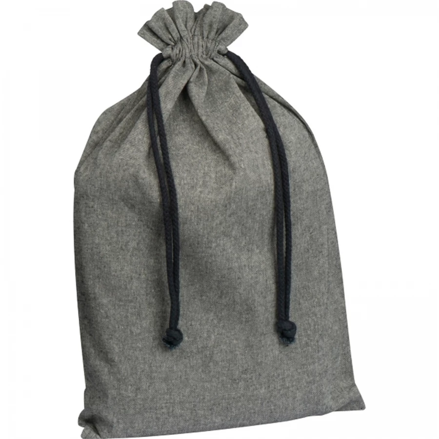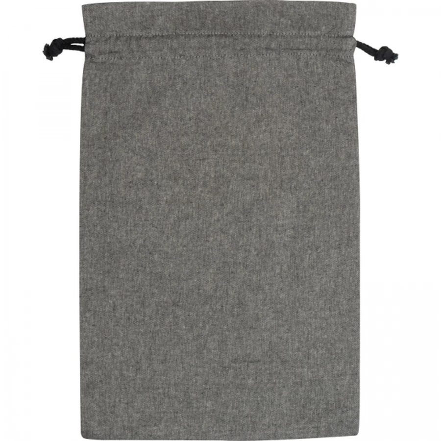 Duży woreczek bawełniany wykonany z bawełny pochodzącej z recyklingu, z certfikatem Oeko-Tex STANDARD 100, gramatura 110g/m². Woreczek zamykany za pomocą sznureczków ściągających.
