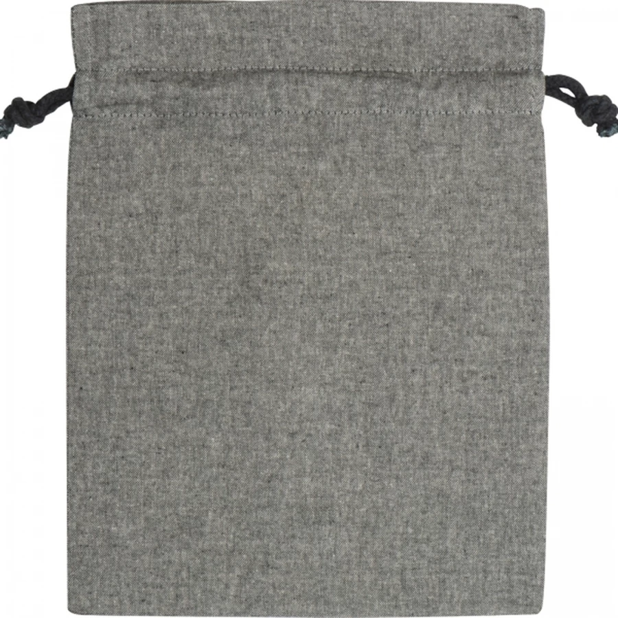 Woreczek bawełniany wykonany z bawełny pochodzącej z recyklingu, z certfikatem Oeko-Tex STANDARD 100, gramatura 110g/m². Woreczek zamykany za pomocą sznureczków ściągających.