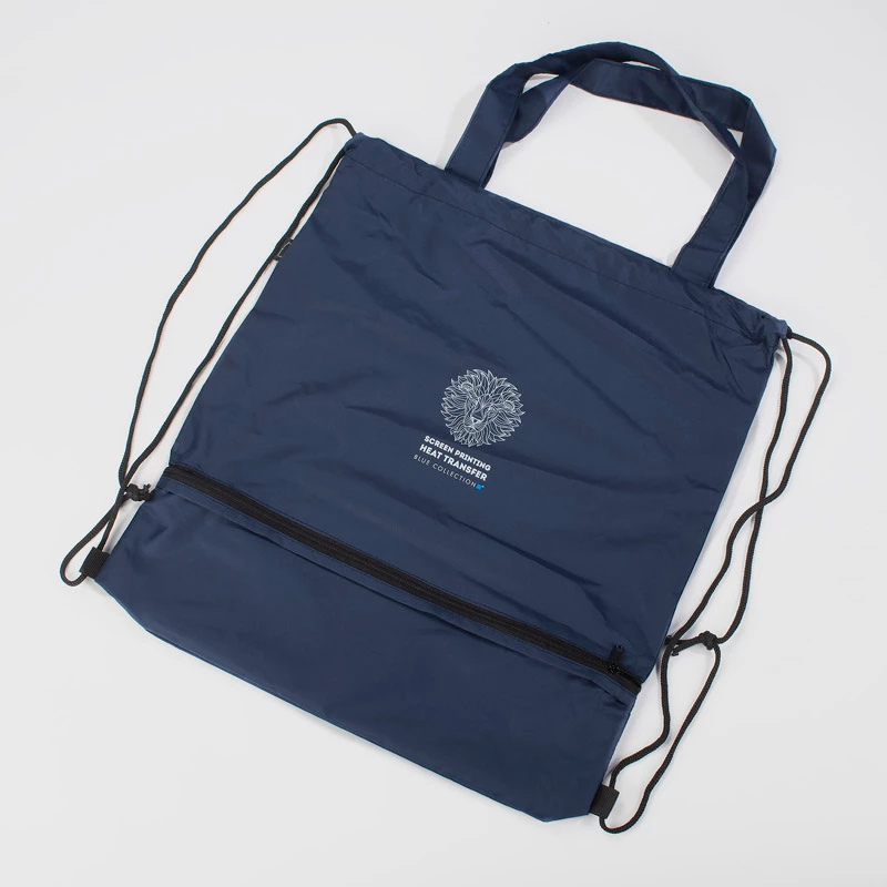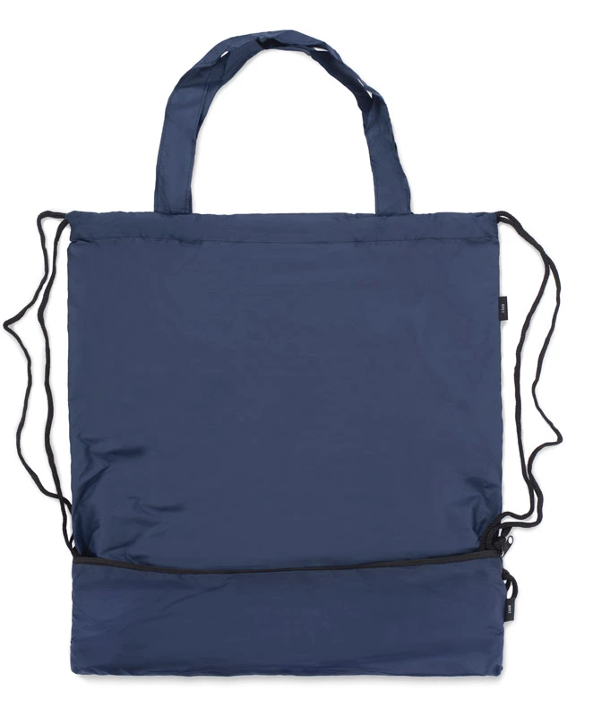 Worek na sznurkach z parasolem RAINY wykonany jest z poliestru RPET, co czyni go bardziej przyjaznym środowisku. Środek worka jest jednokomorowy. Oprócz tradycyjnych sznurków posiada jeszcze rączki o długości 44 cm, dzięki czemu może być używany także jako torba na zakupy. Na dole worka znajduje się zamykana na zamek kieszeń, w której schowany jest dołączony do zestawu parasol, także wykonany z poliestru RPET.