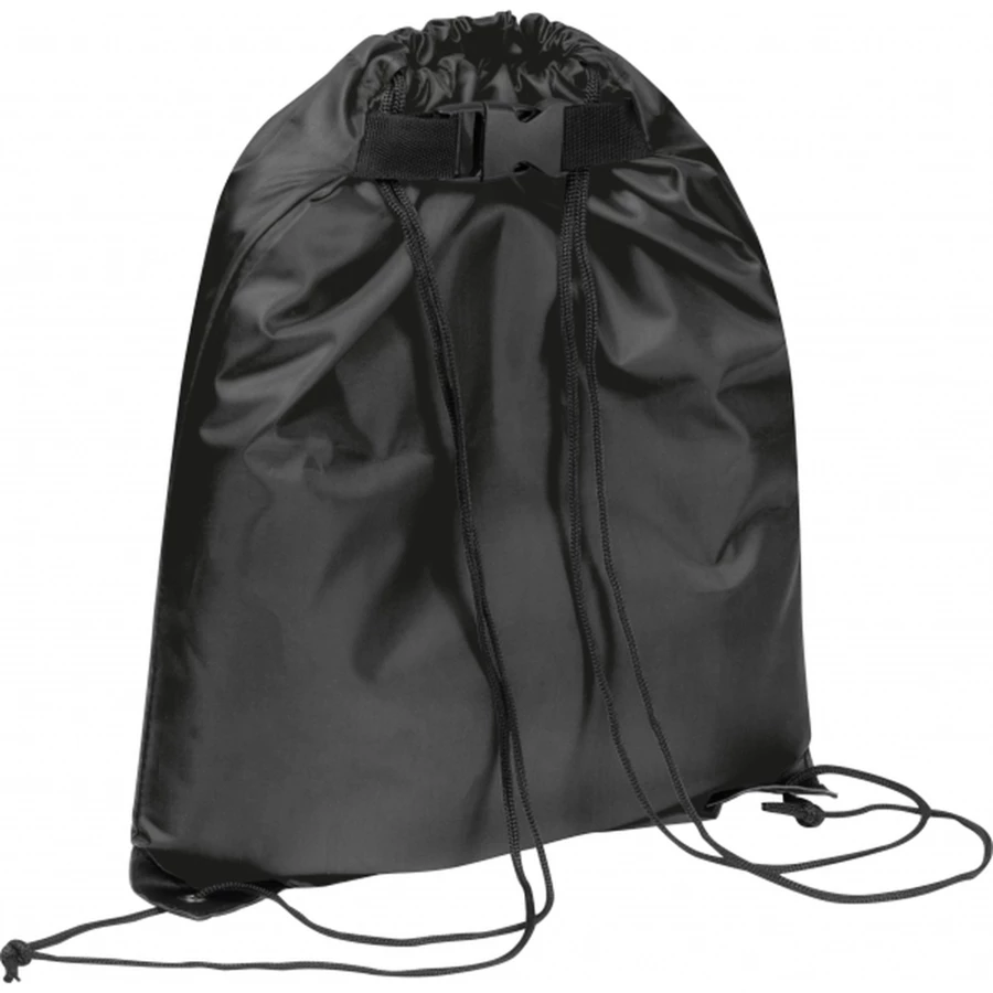 Worek sportowy z RPET z dodatkowym zamknięciem na klamrę.