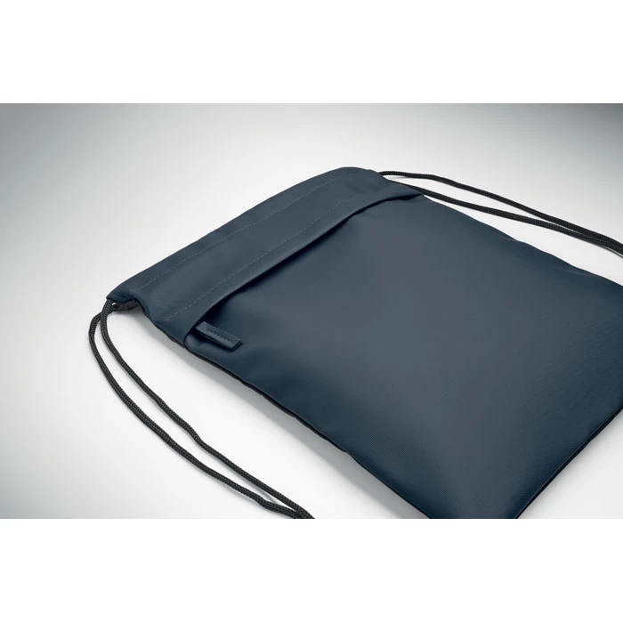 Worek ze sznurkiem powlekany PU, poliester 600D RPET, podszewka poliester 190T RPET. Przednia kieszeń zapinana na zamek.