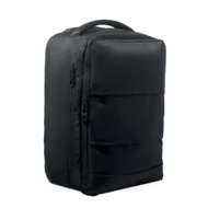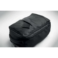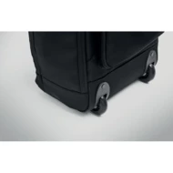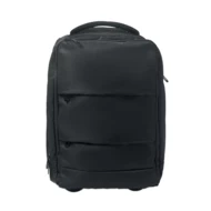 Plecak na kółkach z poliestru 290T RPET z 3 przednimi kieszeniami na suwak, wyściełaną przegrodą na laptopa 15'' i częścią chłodzącą na suwak. Ma wyściełane plecy, paski i tylną przegrodę na suwak.