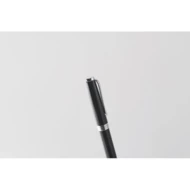 Wykręcany długopis z korpusem z recyklingowanej stali nierdzewnej. Niebieski tusz. Prezentowany w czarnym pudełku.