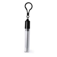 Wysuwana słomka wielokrotnego użytku ze stali nierdzewnej i silikonowym ustnikiem, czyścik i etui z karabińczykiem w komplecie