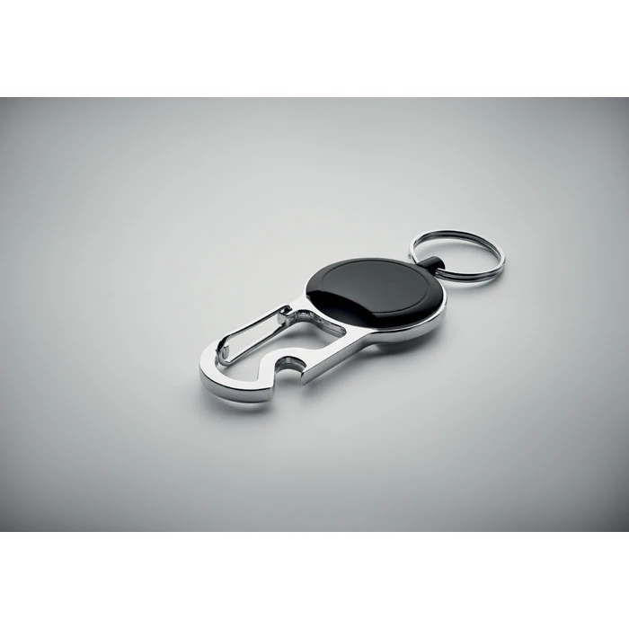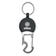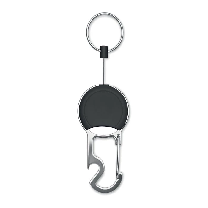 Wysuwany identyfikator z ABS z klipsem, kółkiem na klucze i otwieraczem do butelek.