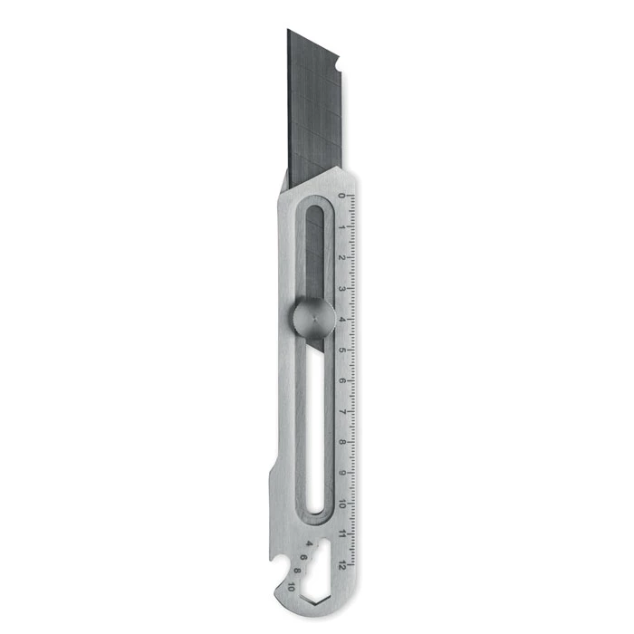 Wysuwany nóż ze stali nierdzewnej z 8 ostrzami ze stali węglowej, otwieracz do butelek, klucz i linijka.