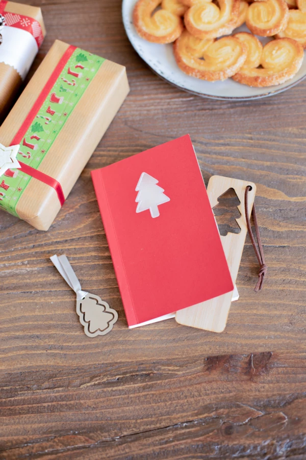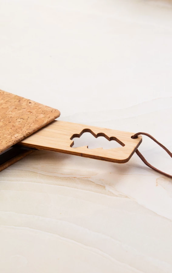 Zakładka do książki ze sklejki bambusowej z wycinanym motywem świątecznym i sznurkiem ze skóry PU.