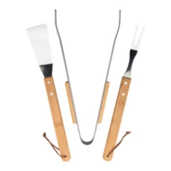 3-częściowy zestaw do grillowania ze stali nierdzewnej z bambusową rączką (widelec, szczypce i łopatka) w papierowym pudełku.