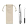Zestaw wielokrotnego użytku z zaparzaczem do herbaty ze stali nierdzewnej w bawełnianym etui. W zestawie zaparzacz do herbaty z kompaktowym i zakrzywionym haczykiem, który umożliwia zawieszenie go nad krawędzią filiżanki lub kubka, oraz szczoteczka do czyszczenia.