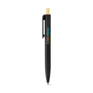 Długopis z recyklingowanego ABS (100% rABS) z bambusową przycisk. Niebieski tusz. Ponieważ produkt jest wykonany z naturalnych materiałów, kolor produktu oraz wynik drukowania mogą się różnić w zależności od produktu. ø11 x 134 mm