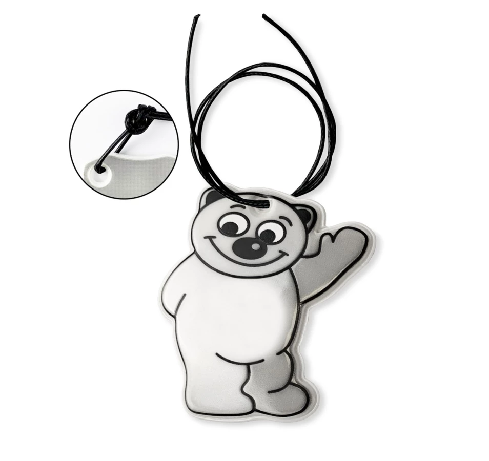 Zawieszka odblaskowa REF-TEDDY w kształcie misia doskonale sprawdzi się jako nośnik reklamowy. Można ją przymocować do plecaka, torby lub ubrania, gdzie będzie przyciągać uwagę i efektownie eksponować nadruk. Wykonana z folii o właściwościach odbijających światło i bezpiecznie mocowana na poliestrowym sznureczku.