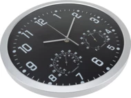 Zegary firmy CrisMa cechuje wysoka wytrzymałość i elegancki wygląd. Ten model, oprócz wskazywania godzin, pokazuje temperaturę oraz wilgotność powietrza. Estetyczna i wytrzymała obudowa, cichy mechanizm zasilany wyłącznie jedną bateria AA. Brak baterii w zestawie.
