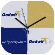Minimalistyczny zegar ścienny BEL AIR wykonany z plastiku oraz metalu. Zegar posiada czarne wskazówki oraz duże pole do nadruku - cała tarcza.