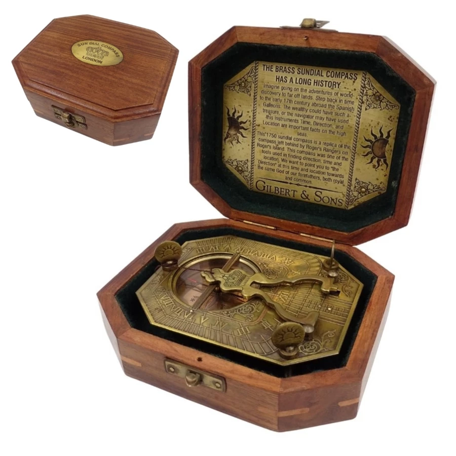 Zegar Słoneczny z Kompasem w Pudełku Drewnianym – Retro Prezent dla Podróżnika – SUN-0106 (NMT-226438)
