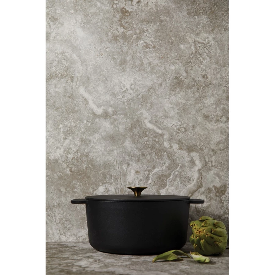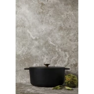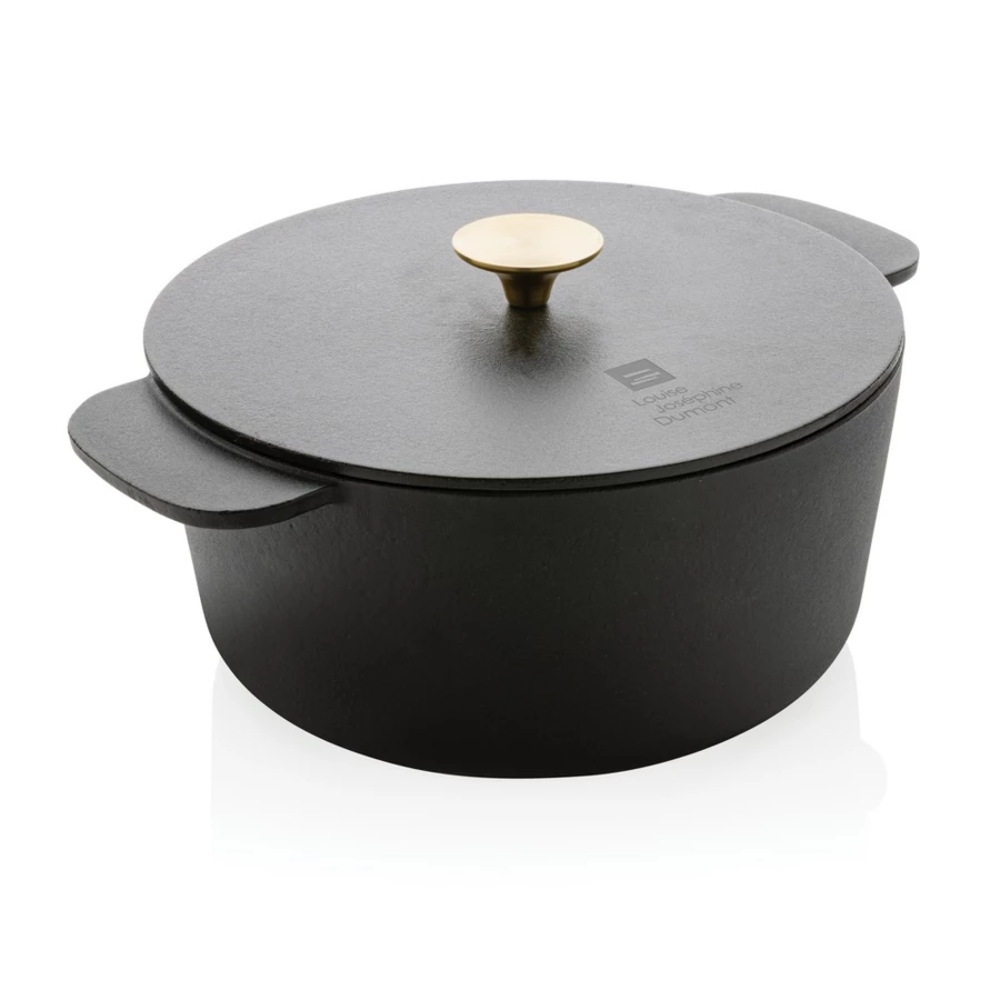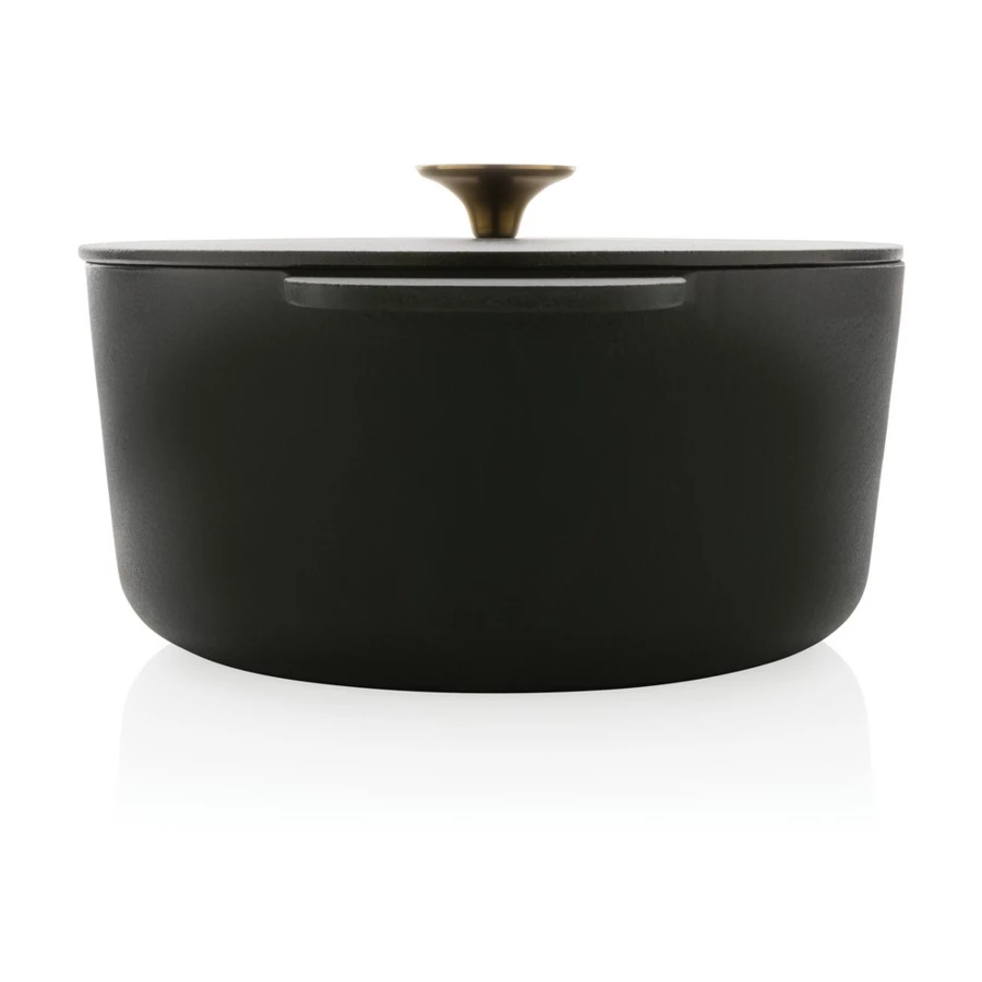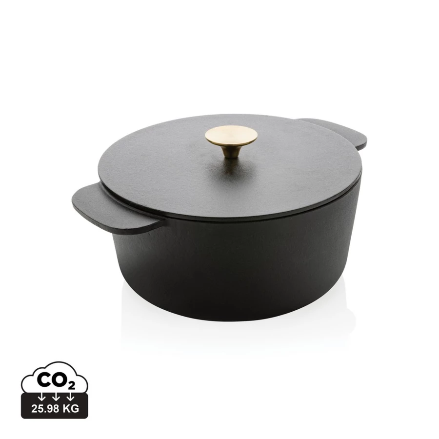 Garnek emaliowany 5,2 L, wykonany z żeliwa dzięki któremu dłużej utrzymuje temperaturę umożliwiając równomierne pieczenie, można używać w piekarniku, na płycie indukcyjnej i na grillu, średnica 26 cm, zapakowany w pudełko z papieru kraftowego z certyfikatem FSC®, ślad węglowy produktu: 25,71 kg CO2