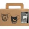 Zestaw dwóch kubków ceramicznych ze świątecznym motywem. Każdy kubek ma pojemność 300 ml. Eleganckie opakowanie pięknie prezentuje się pod choinką i jest przyjazne dla środowiska.