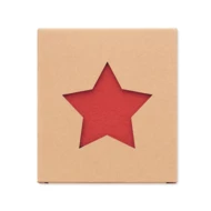 Zestaw 4 podkładek filcowych RPET w kształcie gwiazdek w pudełku z papieru kraft.