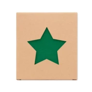 Zestaw 4 podkładek filcowych RPET w kształcie gwiazdek w pudełku z papieru kraft.