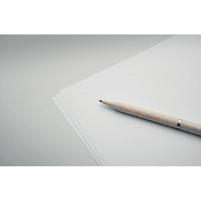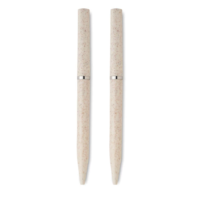 Zestaw długopisów ze słomy pszenicznej/ABS z 1 wykręcanym długopisem z niebieskim tuszem i 1 wykręcanym grafitowym ołówkiem bez tuszu. Prezentowany w papierowym pudełku z recyklingu. FSC®-certified | FSC MIX, P5.1, FSC-C213206