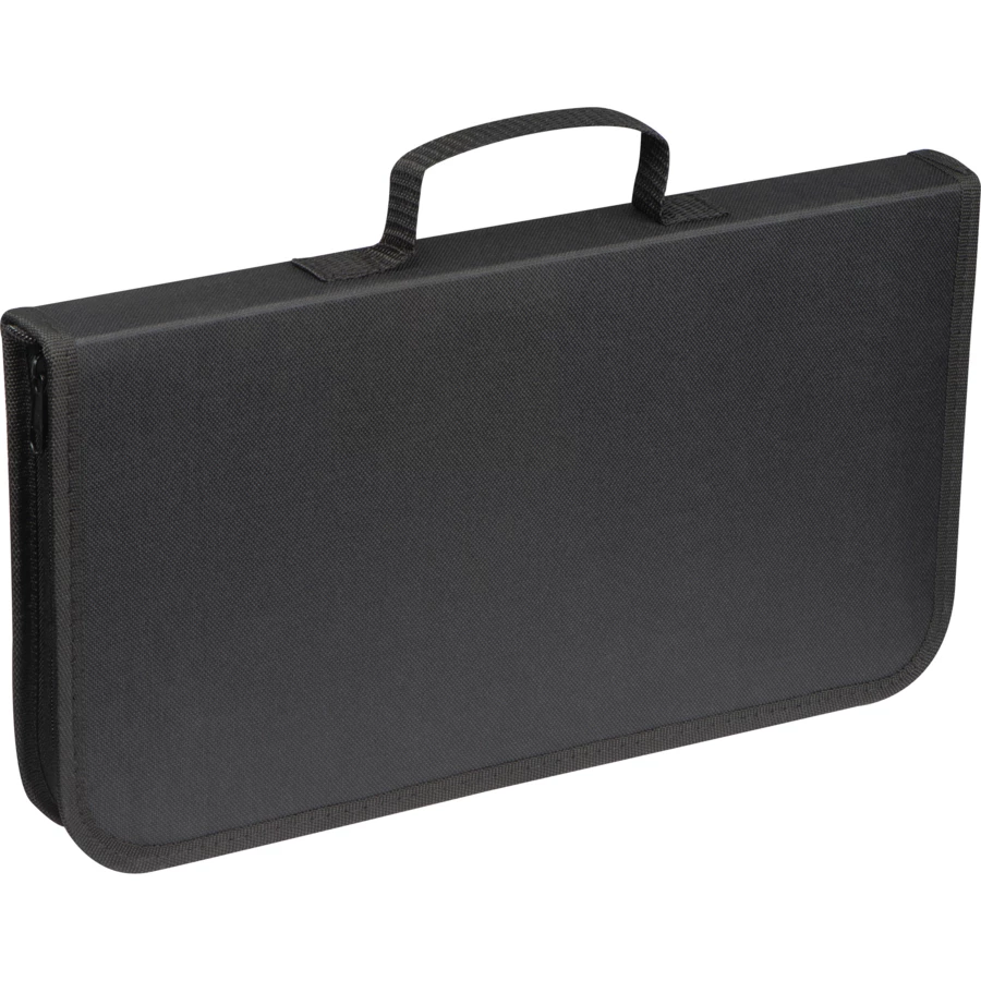 Praktyczny zestaw na grilla, składający się z dużej deski do krojenia, dwóch noży z ostrzem wykonanym ze stali nierdzewnej, sczypce, widelec do mięsa oraz ostrzałkę do noży. Całość zapakowana została w poręczne poliestrowe etui w kształcie walizki, zamykane na zamek.