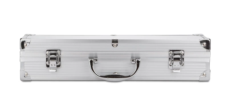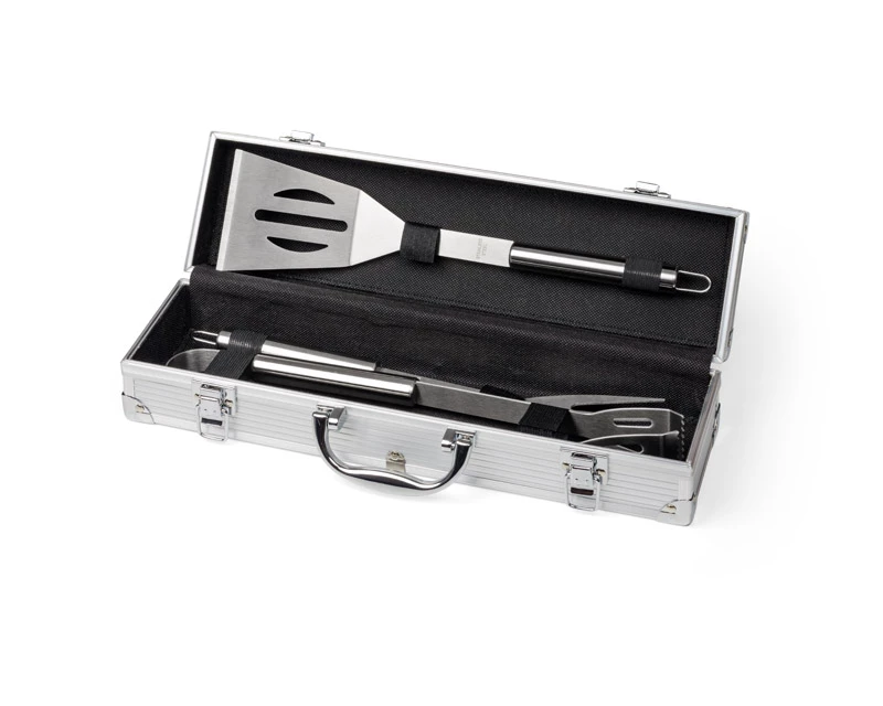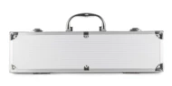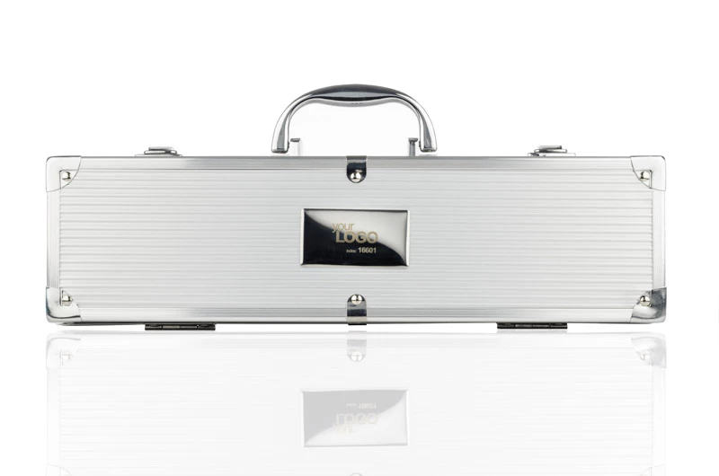 Praktyczny zestaw do grillowania zawierający tylko najbardziej niezbędne przyrządy: łopatkę, szpikulec, szczypce. Pakowany w wygodną walizeczkę. Logo wygrawerujemy na blaszce umieszczonej na walizeczce. Blaszka jest dołączona osobno.