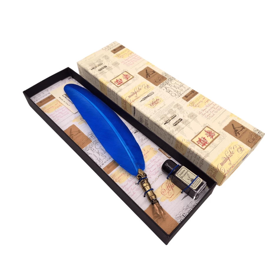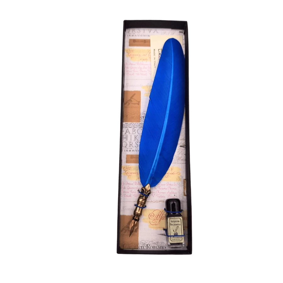 Piękny, włoski zestaw do kaligraffi z niebieskim piórem