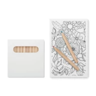 Zestaw do rysowania dla dorosłych z 10 kartami i 12 kolorowymi kredkami w papierowym pudełku z recyklingu.