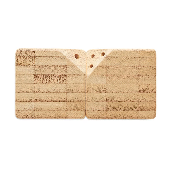 Magnetyczny bambusowy zestaw do soli i pieprzu z zatyczką PP u podstawy. Dwie solniczki łączą się magnetycznie.
