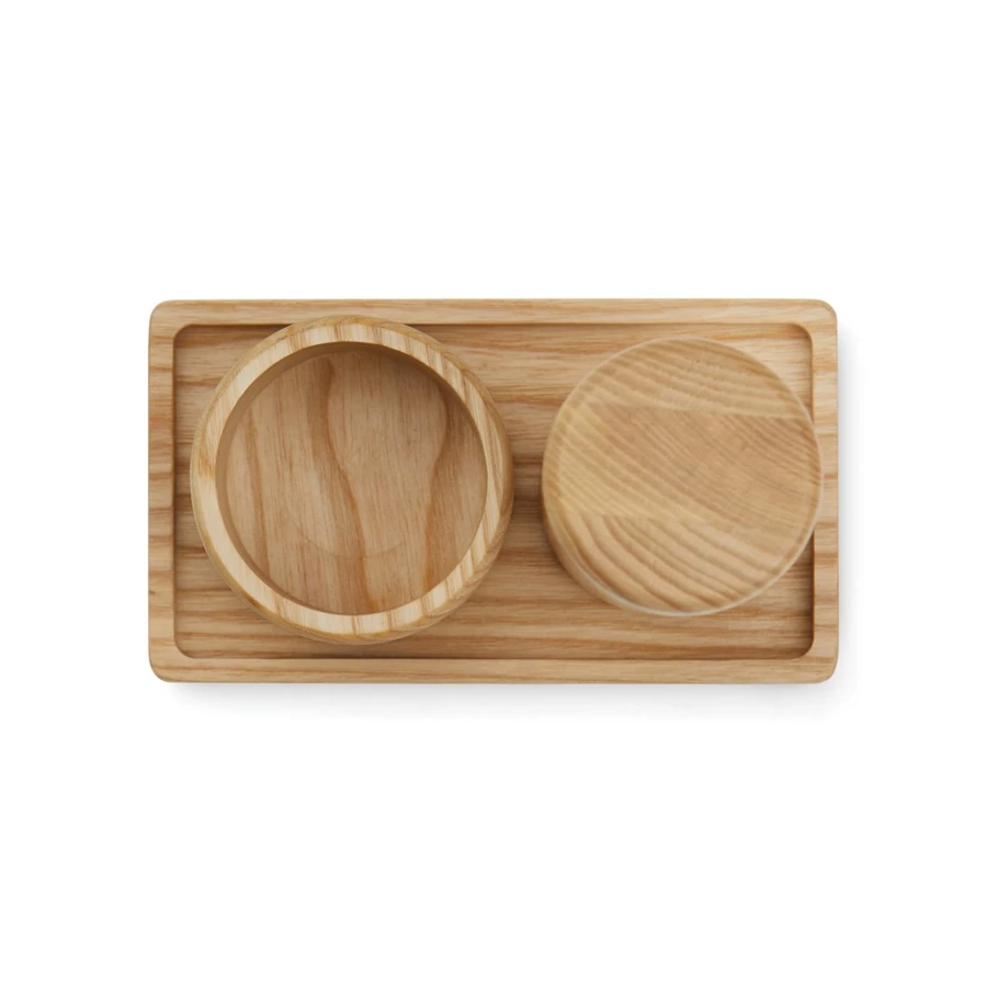 Zestaw do soli i pieprzu, regulowany młynek do pieprzu z ceramicznym mechanizmem mielącym, tacka w komplecie, wykonane z drewna jesionowego