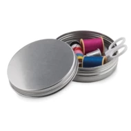 Zestaw do szycia w metalowym pudełku.