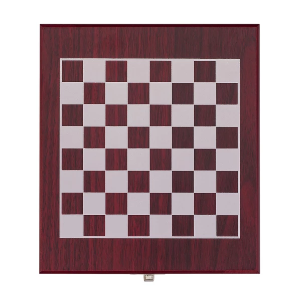 Oryginalny zestaw składający się z szachów oraz akcesoriów do wina. Wykonany z metalu i MDF. Figury szachowe wykonane są z plastiku. Na akcesoria do wina składają się: nóż kelnerski, okapnik, zatyczka oraz termometr.