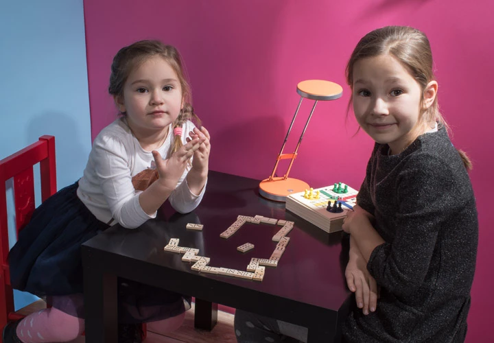 Zestaw gier w praktycznym drewnianym pudełku. Zawiera cztery różne gry: domino, bierki, grę planszową "Chińczyk" oraz talię kart. Logo wygrawerujemy na pokrywce pudełka.