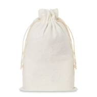 Zestaw do kąpieli zawierający gąbkę, pumeks i myjkę, zapakowany w woreczek bawełniany z okienkiem PEVA.