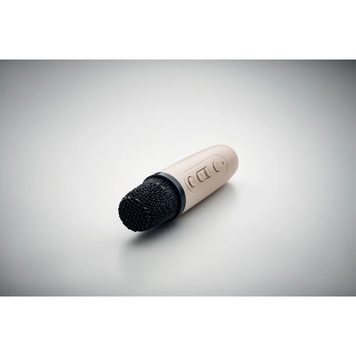 Zestaw karaoke zawierający bezprzewodowy głośnik 5 W z diodami LED zmieniającymi kolory, wykonany z tworzywa ABS z uchwytem z PU i mikrofonem. Wbudowany głośnik z akumulatorem 800 mAh i mikrofon z akumulatorem 400 mAh.