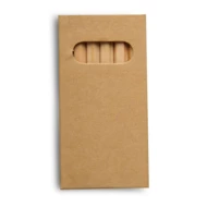 Zestaw drewnianych kredek w 6 kolorach. Pakowany w kartonowe pudełko.