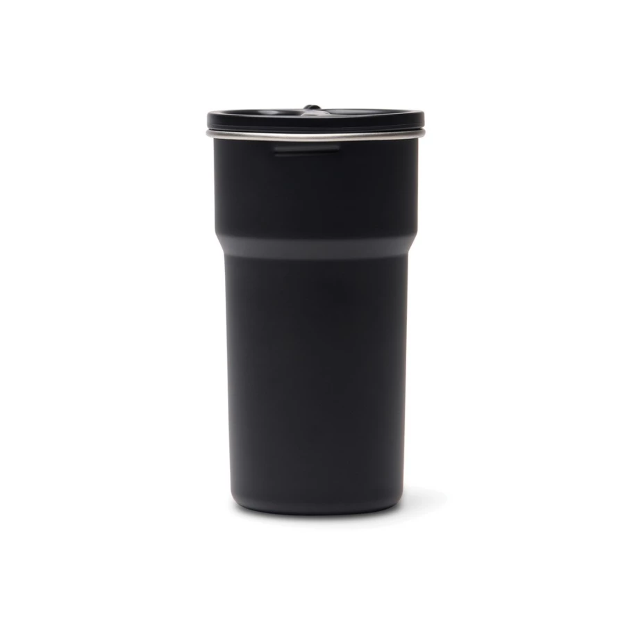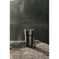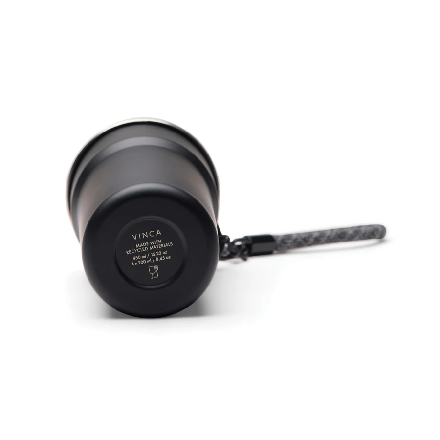Zestaw kubków podróżnych 5 w 1, w komplecie kubek 450 ml oraz cztery kubki 250 ml, które mieszczą się wewnątrz dużego kubka, duży kubek posiada odpinany pasek do noszenia, wykonane ze stali nierdzewnej z recyklingu, całkowita zawartość materiałów z recyklingu obliczona na podstawie masy całkowitej produktu: 71%