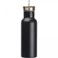 Zestaw zawierający termos próżniowy i dwupoziomowe pudełko na lunch ze sztućcami i z ruchomą przegródką pozwalającą dowolnie dzielić pudełko na 2 komory. Całość spięta gumką. Zestaw wykonany ze stali nierdzewnej, włókien pszennych i bambusa.