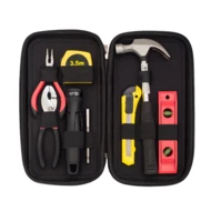 Zestaw narzędzi w etui zapinanym na zamek. Zestaw składa się z: młotka, poziomicy, nożyka introligatorskiego, zwijanej 3,5m miarki wyposażonej w mechanizm blokujący (Podziałka w centymetrach i calach) oraz szczypiec długich, szczypiec z przegubem ślizgowym. W zestawie znajduje się także uchwyt z przedłużaczem do 6 bitów: 2 śrubokręty krzyżakowe, 2 śrubokręty płaskie, 2 imbusy. Uchwyt posiada możliwość ustawienia pod kontem co ułatwia pracę w trudno dostępnych miejscach.